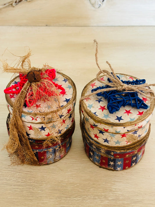 Primitive Handmade Americana Patriotic Stacking Boxes, Patriotic Paper Mache Shaker Boxes, Patriotic Stacking Box, Fourth of July Decor