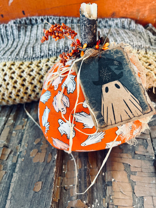 Primitive Halloween Pumpkin, Primitive Ghost Pumpkin, Fall Decor, Halloween Decor