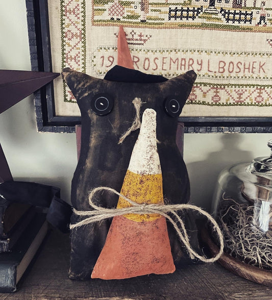 Primitive Halloween witch kitty candy corn doll - primitive decor - Halloween decor - cat - witch