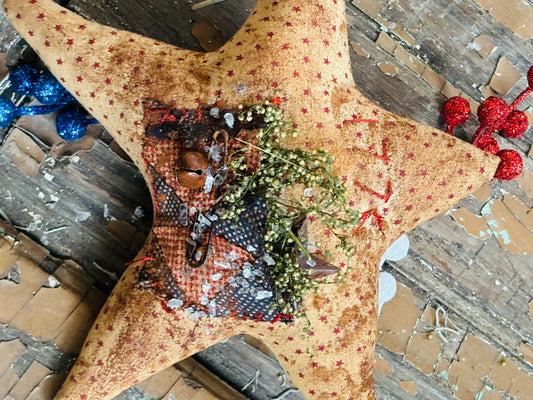 Primitive Patriotic Heart Americana Flag Stars, Handpainted Stars, Fourth of July Decor, Memorial Day, Patriotic, American