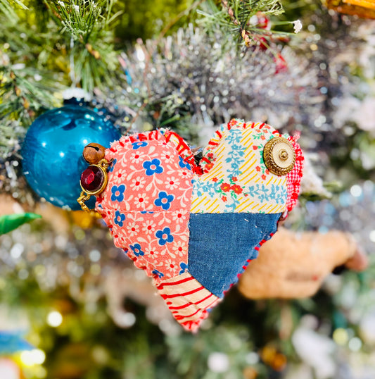 Primitive Vintage Quilted Christmas Tree Ornament, Handmade Ornaments, Handmade Quilted Decor, Primitive Christmas Hanging Ornament
