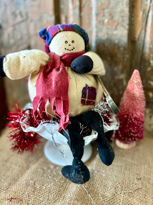 Primitive Winter Snowman Ornie Doll, Snowmen Decor, Winter Christmas Decor, Handmade Primitive Snowman
