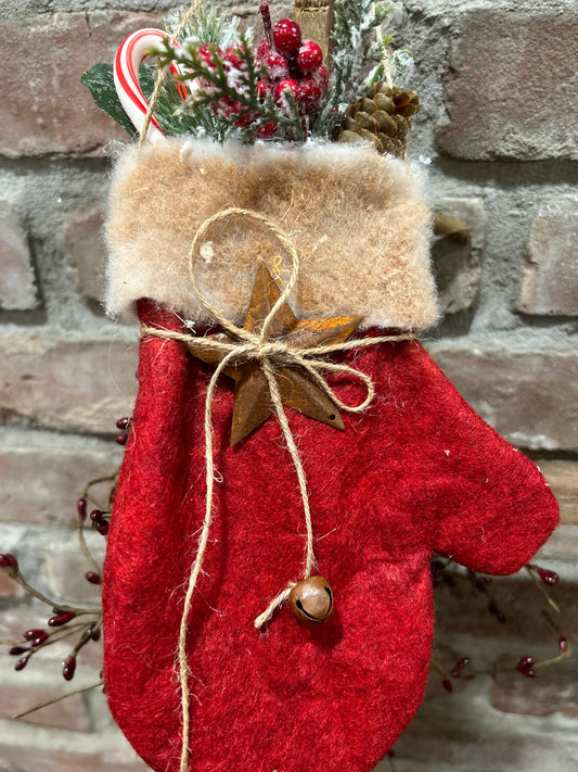 Primitive Winter Santa Claus Glove Hanging Ornament, Primitive Farmhouse Christmas Wall Decor