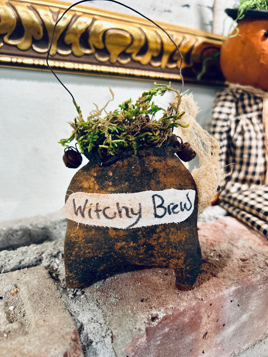 Primitive Witches Brew Cauldron, Primitive Halloween Decor, Witch Cauldron, Witchy, Fall Decor