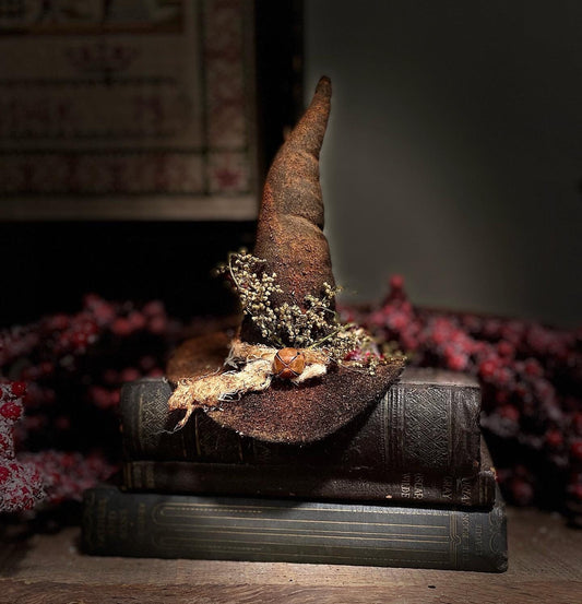 Primitive Witch Hat, Halloween Witch Hat, Primitive Halloween Decor, Black Witch Hat, Fall Autumn Decor, Handmade Fall decor