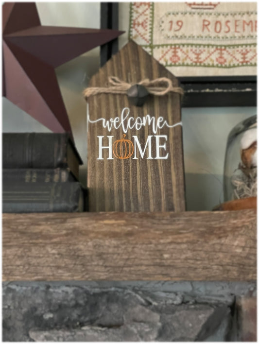 Wooden Block House Welcome Home Pumpkin Fall Decor Rustic Farmhouse Decor Halloween