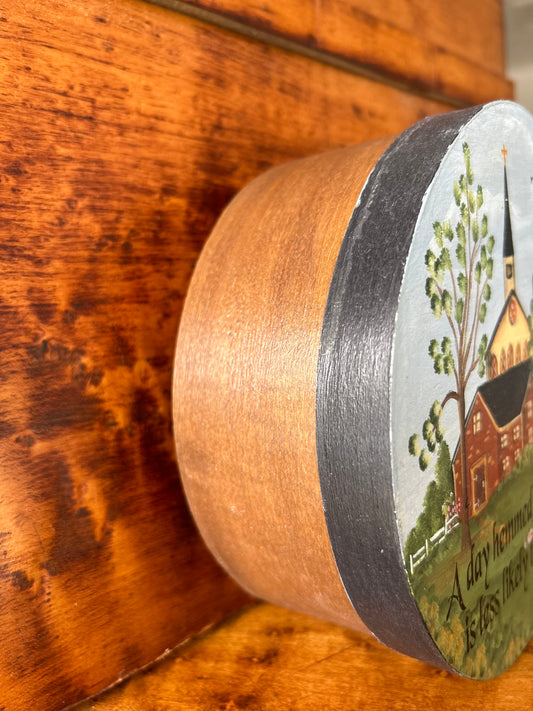 Vintage SIGNED hand painted shaker box, country chapel, folk art, Religious Decor