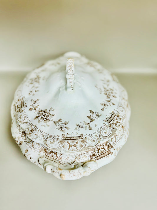 Antique Henry Alcock & Co Elite Oval Covered Vegetable Dish Tureen England~Covered Oval Casserole/Vegetable Serving Dish Floral SIGNED