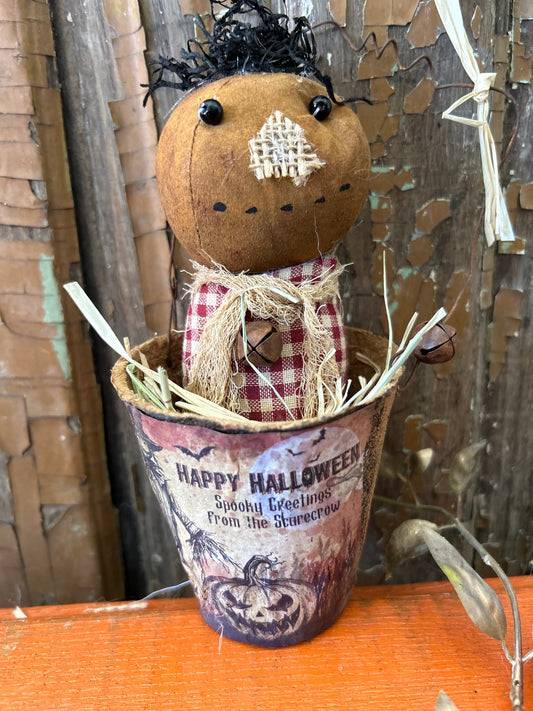 Primitive Pumpkin Patch black Scarecrow Doll, Primitive Pumpkin Decor, Grubby Bucket Pumpkin Man, Fall and Autumn Decor, Folk Art