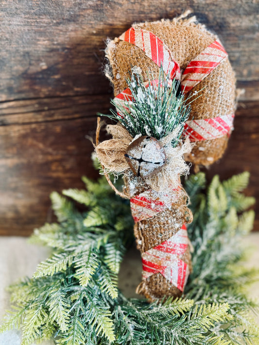 Handmade Primitive Burlap Candy Cane ornies, Farmhouse Christmas, Rustic Christmas Decor, Candy Cane Decorations