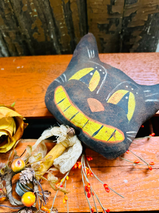 Primitive Folk Art, Halloween Vintage Cat, Retro Halloween Display, Spooky Black Cat, Halloween Decoration