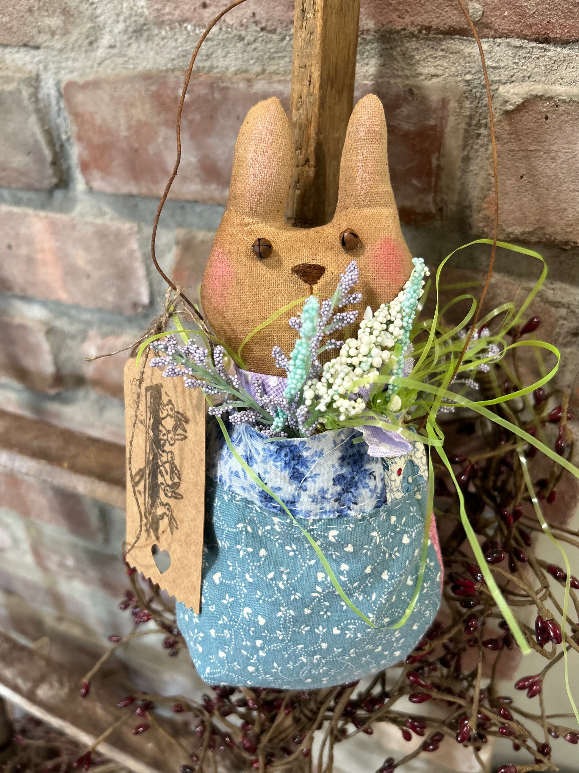 Primitive Farmhouse Easter Bunny Hanging Ornament, Primitive Bunny Easter Decor, Easter bunny Egg